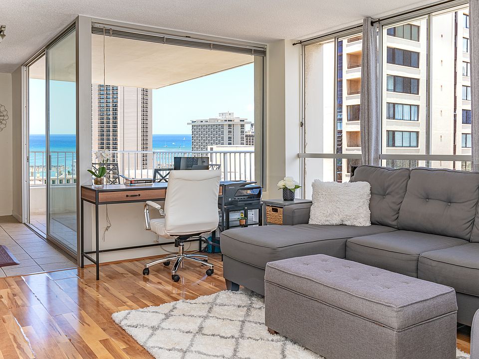 Welcome home to your turn-key, 1 bed/1 bath corner unit, retreat! Soaring 20-stories above fabulous Waikiki, you'll love the stunning ocean, mountain, & city views this getaway has to offer. Feel right at home in the newly remodeled kitchen with granite countertops, and updated appliances. Relax and unwind on your spacious lanai with Ocean views and cool island breezes. Owner-occupants can fill out a parking request form and enjoy free parking once available. Indulge in world-class shopping, fine dining and spectacular beaches that are just blocks away from the front door. Maintenance fees include ELECTRICITY, an on-site manager with secured elevator access, a 32nd-floor sky deck, and more. The home also features AC and washer dryer in the unit. Schedule a private showing today!