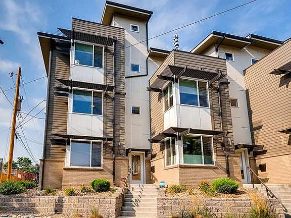 Luxury rental. Sun-filled and modern, LEED Platinum Certified, ZUNIcorners townhome- Open floor plan with gleaming hardwoods, Hunter Douglas shades throughout and high-end lighting! First floor functions as a nice office space with a bathroom and access to the double car garage. Built in shelving, extra storage installed on the ceiling and bike pulleys for hanging included. Chef's Kitchen has dark wood cabinetry, upgraded granite counter tops and large island, stainless appliances including a gas range, oven and built in microwave. Great room has dining/living combo with a cozy gas fireplace & wall mounted TV w/ with built in surround sound speakers. A powder room & utility closet with built in pantry complete this level. The spacious master has a double closets, double sinks in the full bath built in speaker & blackout shades to ensure a restful nights sleep. A guest bedroom with full bath and closet are separated by the washing machine and dryer with storage. Rooftop deck has ample room for couch, grill and table. The views are incredible of both the city and Mile High stadium. So many neighborhood restaurants & retail shops and a City Rec Center are within walking distance. Downtown is just beyond. There is easy access to I-25 - making it a quick commute to other parts of the City. This home is highly energy efficient, LEED Certified, and ready for move-in. There is NO HOA. Partywall available on request. Owner pays water. Tenant pays all other utilities.