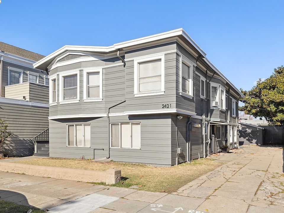Charming Triplex in Prime Downtown Alameda. Welcome to 2421 Webb, a rare Colonial Revival-style triplex in the heart of downtown Alameda. Perfect for investors seeking a strong cap rate or homeowners looking to offset living costs, this property combines timeless charm, an unbeatable location, and significant rental income. The triplex features a 2-bedroom, 1-bath unit currently renting for $2,315.25/month, along with (2) 1-bedroom, 1-bath units renting for $1,698.62 and $1,780.81 per month, generating a total monthly income of $5,794.68. Unit B stands out for its abundant natural light and classic period details, offering a warm and inviting living space. The property includes off-street parking, a detached garage with ADU potential (buyer to verify), and separate gas and electric meters for each unit. A spacious utility room provides expansion opportunities, whether for shared laundry, additional living space, or even a fourth unit. Located steps from downtown Alameda's vibrant shops, dining, and parks, this property offers unmatched convenience and lifestyle appeal. Whether you're looking to invest in a high-performing property or live in one unit while renting the others, this triplex is an incredible opportunity.