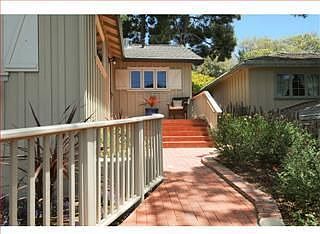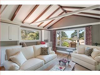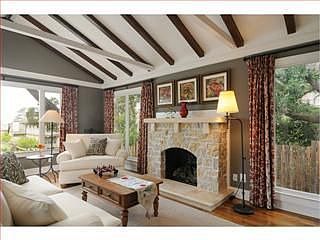 Close to town and beach this charming Carmel cottage has been extensively remodeled by expert craftsmen. The gourmet kitchen is a chef's delight and boasts Jerusalem limestone counters, custom cherry cabinets and a Wolf range. The cottage boasts two Carmel stone fireplaces, open beamed ceilings, hardwood floors, marble guest bath, and dynamite master suite with limestone bath. It's a dream!