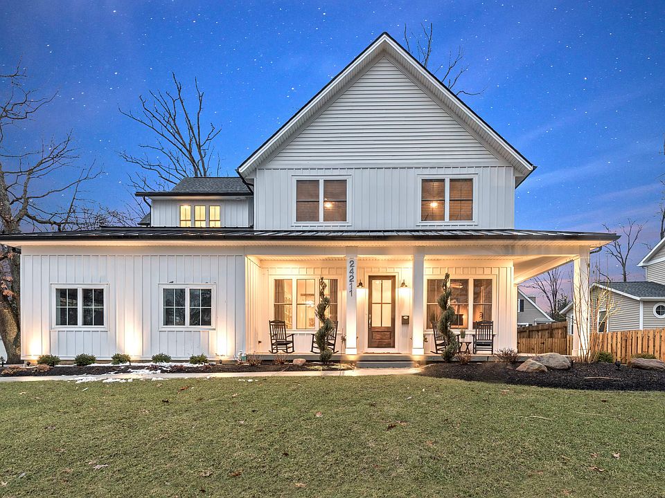 Absolutely stunning, modern farmhouse style home in Bay Village! This custom home is only 3 years old with high end finishes throughout. The open floor plan has beautiful wood floors, clear sight lines, and is loaded with natural light with windows along the entire back side of the house. The chef's kitchen has gorgeous quartz counter tops, a 10-foot long island, farmhouse sink, Wolf 6 burner gas stove, stainless steel appliances, and custom, soft close cabinetry. The whole house is smart wired and the main floor has a brand new surround sound system and custom window treatments. The first floor office has an attached full bathroom and can double as a guest room or first floor in-law bedroom option. Upstairs there are 4 spacious bedrooms and 3 full bathrooms. The master suite has his and hers walk-in closets and a luxurious master bathroom with an incredible 11 x 9 shower with a soaking clawfoot tub. The unfinished basement has a rough-in for an added bathroom and plenty of open space for a family room or media space. Just minutes to Lake Erie Beaches, Crocker Park, top rated schools, and plenty of shopping, as well I-90 which makes a quick and easy drive to downtown Cleveland.