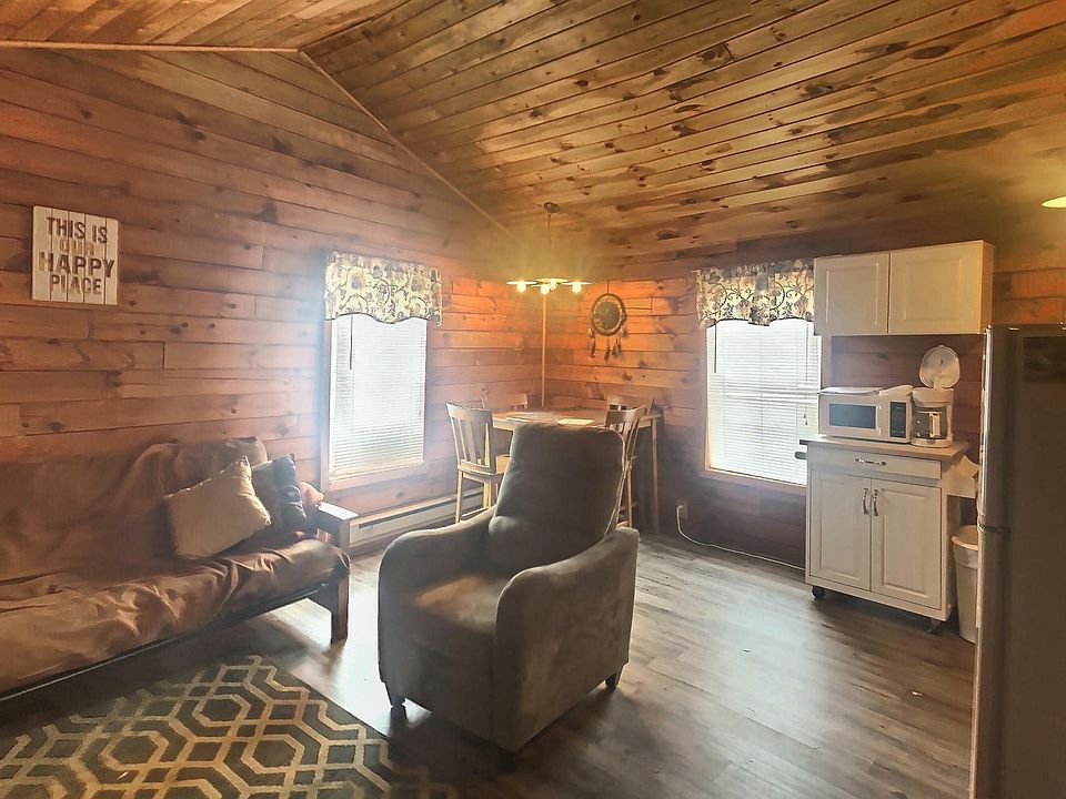 One bedroom rental cabin on 4.375 acre lot on Oh 328 Just 1 mile off Oh 56 south of New Plymouth. Cabin is currently being used as a vacation rental. There also is a second cabin on the property that with work could be converted into a 2nd vacation rental. Good investment property. Fix up the second cabin while collecting income off the first cabin.