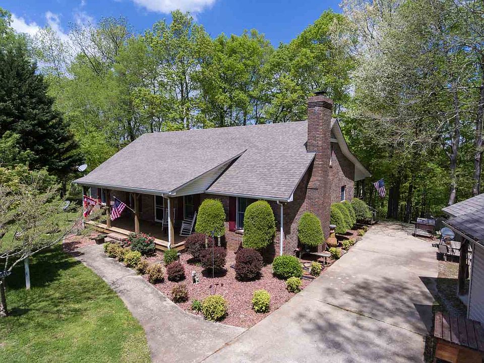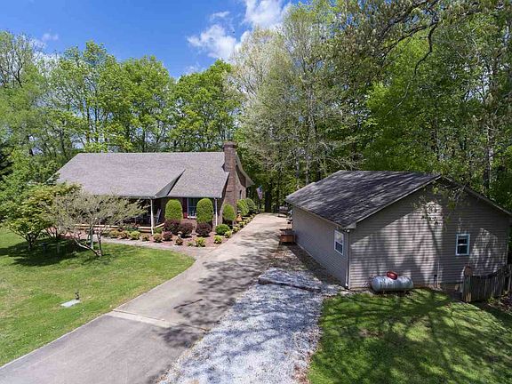 Welcome to your new home nestled in the middle of a wooded 3.5 acre tract of land but still less than 10 mi to the Interstate!Nothing beats the relaxing sights and sounds of nature that surrounds you.Relax on your large covered back porch and enjoy the view!From your back porch you can see Sugar Creek that intersects the back of the property,tons of wildlife, and nothing else but the mature trees that give you privacy and shade.The main house boasts 3 Br,2 Ba, a large open living room and kitchen,and a wood burning stacked stone fireplace.Venture outside to the detached 24x30 guest house with its own covered porch and view.!It has its own kitchen, living area and 3/4 bath.