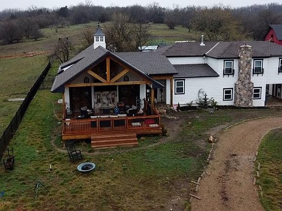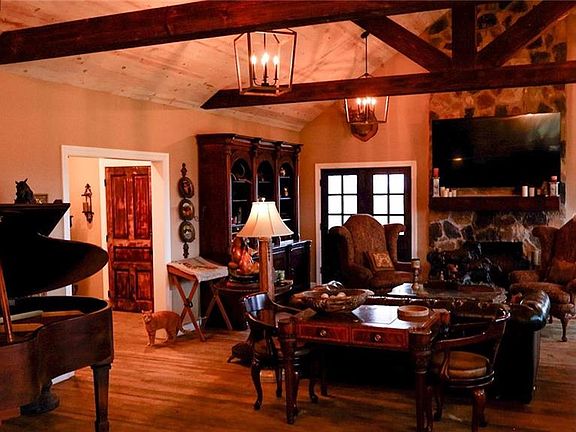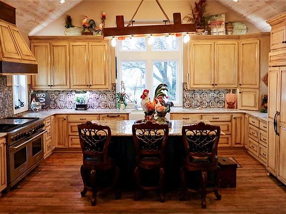 Lacygne, Ks Exquisite custom home on 126 continuous acres. This property features a 2.6 acre fully stocked body of water & hillside views. The homes interior is magnificent with no expense spared. When you walk into the main space the wood beams, natural wood ceilings will impress. The family room is anchored with a natural stone custom gas fireplace. Off the living room you will find 2 sets of ornate custom crafted French doors leading you to the huge, covered patio featuring amazing sunsets. The kitchen is as grand as can be w/ Wolf custom industrial gas stove and fridge. You will enjoy the views through your beautiful kitchen window looking into your rod iron fenced back lawn. Just off the kitchen is a huge walk-in pantry. Throughout the home you will appreciate the priceless custom oak floors. The hall off the family room features a well thought out guest bath and guest room. The upper-level features 1 bonus bedroom and a large master bedroom w/on suite featuring a huge bath w/ a custom title walk-in shower, priceless antique vanity and more. The master bedroom closet is as large as a bedroom w/ 2 windows. The basement is finished out as an additional family room w/ a whitewashed brick gas fireplace. In the basement you will find a commercial wash sink area and a bonus sewing room. If you need more space, you're in luck. This property has a turn of the century hay barn and multiple paddocks for your small animals in place and a 14x40 detached portable she shed fully heated and cooled. The entrance & security auto gate system are state of the art & with custom 5 rail pipe fencing on both sides of the drive, 100 yards to the home. The land is comprised of 2 productive cool season grass paddocks along the front of the property and 1, 20-acre hay meadow in the northeast corner. The balance of land features beautiful trails & hardwoods throughout. The property boasts 4 ponds & is fully fenced. Well water w/septic, Gas heat & Stove. This property is top notch!
