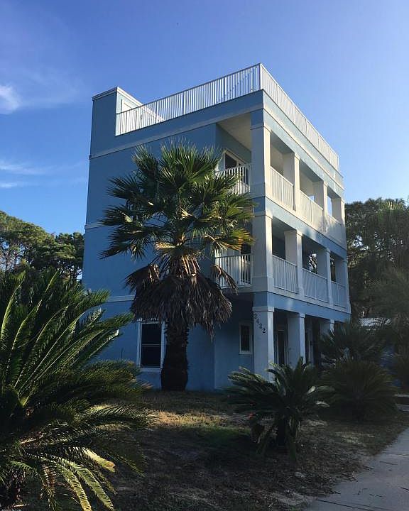 3 story house on the east end of the beach. The main living area is on the first floor and includes a living room and a large kitchen with center island. Also on the first floor is a half bath and a covered porch. The second floor has 2 bedrooms, one bathroom and a balcony. The 3rd floor has the master suite and another balcony. And then there's another separate living area on the roof! An outdoor kitchen makes dining and relaxing in the Florida sunshine easy! Come see this beach house for yourself!
