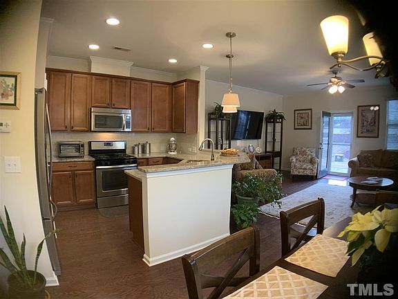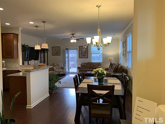 The Pemberley community is nestled between downtown Apex and Holly Springs off of NC 55. The popular Kinsley floor plan offers a bedrm and full bath on 1st floor. Large family room open to dining and well appointed kitchen w/gas stove top, granite, back splash. Spacious master, bath with garden tub, sep shower and walk in closet. Loft area provides a great space for games or studies. This end unit has 1 car garage extra parking for your guests. Sit on your rear patio and enjoy the open field view.