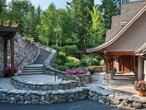 An elegant Craftsman style home that compliments the most desirable waterfront location on Whitefish Lake, 166 feet of frontage on Carver's Bay. The finest of finishes throughout the three en suites in the main home and an additional suite in the guest home. Custom furniture included in this turn key offering. The heated porcelain tile floor and the black soapstone countertops provide a stunning contrast to the custom cabinetry in the chef's kitchen. Living room and dining with automatic sun shades with amazing view of the lake and mountains. Theatre and the changing room are steps away from the hot tub, boat house patio and steps to the beach and dock. The screened patio opens to a complete galley kitchen and powder room. Beyond the kitchen adjacent to the patio room is a heated shop. 985 square foot guest home with rec room. Heated concrete courtyard/driveway/steps lead you from the upper parking area to the home. Forested 1.27 acres with room for additional structures.