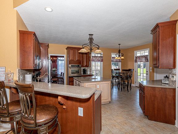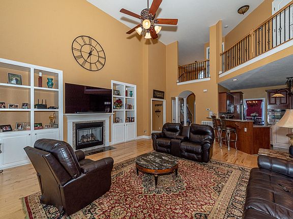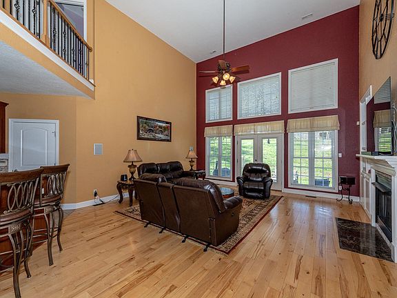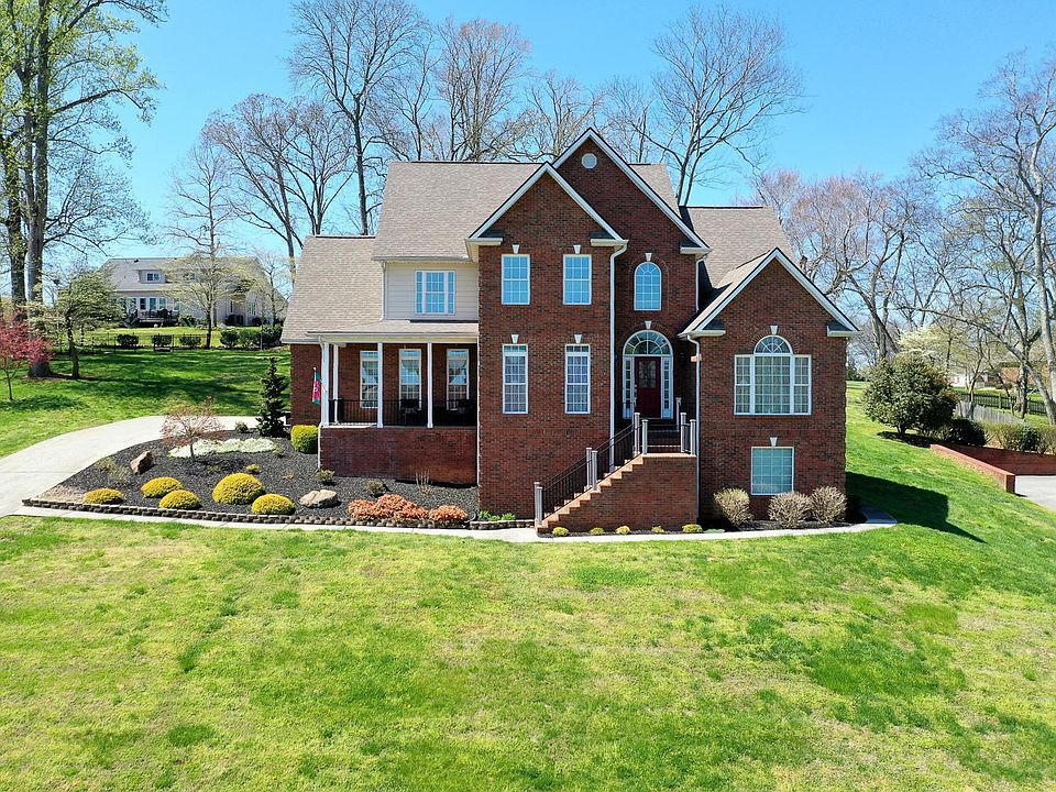Amazing value in River Run Subdivision ! Beautiful 3 BR all brick home with ~ 3000 sf. finished living space and full unfinished walkout basement with 2nd fireplace. Floor plan features a grand foyer, 18' ft. ceilings, hardwood flooring throughout, great room with wall of windows:lots of natural light! The large eat-in kitchen with island, pantry, corian counters, and stainless appliances, has access to a delightful covered porch; the perfect place to enjoy the view! A formal dining room, office, spacious owners' suite with double trey ceiling, and spacious bathroom are also on the main level. Additional bedrooms are upstairs including one with private bath. There is abundant storage & room for growth! Enjoy the neighborhood picnic pavillion and river access for kayaking & fishing!