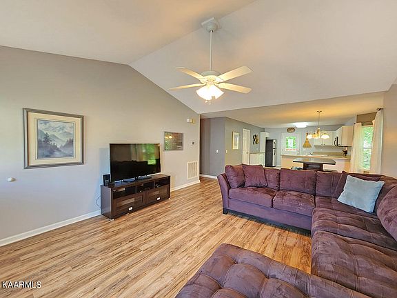 AMAZING LOCATION. This lovingly maintained 2 BEDROOM 2BATH home is located the heart of Pigeon Forge in a cul-de-sac. Look out the front of the home to see a beautiful view of the Smoky Mountains and Ferris Wheel during the day and The Island's lights at night! Owner enjoys spending summer evenings watching Dollywood's and 4th of July fireworks from her front porch. Great open floor plan - bright living room with CATHEDRAL CEILINGS, GLEAMING NEW FLOORS, spacious kitchen with AMPLE COUNTER SPACE, STAINLESS STEEL APPLIANCES and comfortable dining area. Bay style windows in the dining area bring in lots of light. MASTER SUITE features a walk-in closet and private bathroom. Down the hall, you will find a second bedroom, bathroom, laundry room and 2 closets. While all of the greatest attractions are close, this home is nestled in the trees and has a great BACK DECK to relax on, level paved drive. Home owners lovingly maintained the home: * NEW HVAC 2017, * NEWWATER HEATER 2020, * NEW FLOORING IN LIVING ROOM/KITCHEN 2020, NEW CABINET PAINT AND HARDWARE 2020, NEW STAIN BACK DECK 2022, *CARPETS PROFESSSIONALLY CLEANED 2022.