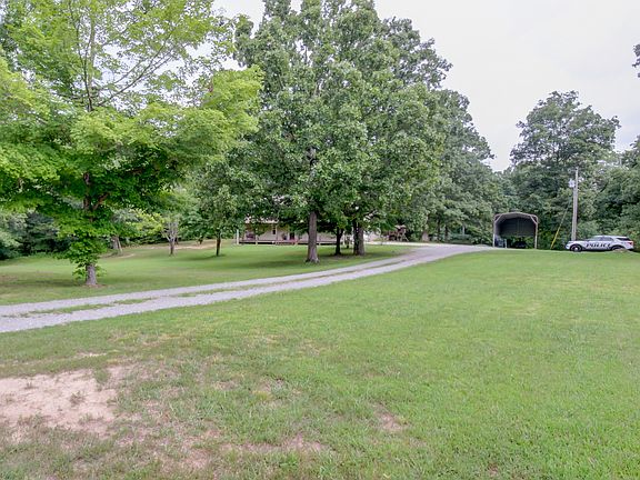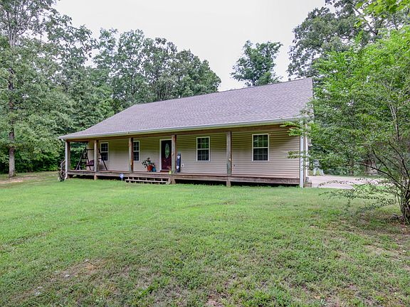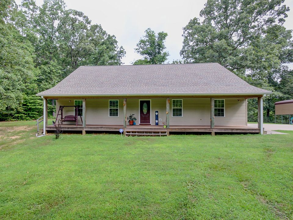 Located in the heart of country living, this stunning home offers the perfect blend of modern comfort and privacy. Situated on a sprawling 2.3-acre wooded lot, this property is a true outdoor paradise. Step inside and be greeted by the warm and inviting wood vaulted ceilings, creating a cozy and rustic atmosphere. The open floor plan seamlessly connects the living area, dining space, and kitchen, making it ideal for entertaining. The primary suite is a true retreat, boasting a double vanity and a generous walk-in closet, plenty of storage space. Two additional bedrooms and bathroom provides ample room for guests or a growing family. The exterior of this home is just as impressive as the interior. Enjoy your morning coffee on the covered front porch or host summer BBQs on the back deck, overlooking the expansive backyard. Private stocked pond with a dock perfect for fishing. Short commute to the Cumberland River, KY Lake, Clarksville, Erin, & Dover for work & recreational activities
