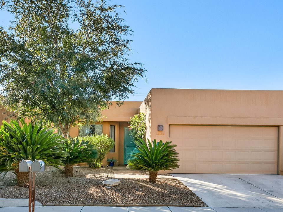 * VIEW VIDEO: https://az.movinghometour.com/22004061_Tucson%20MLS * Centrally located small gated community of 28 homes. Rarely is there a home for sale in this neighborhood. Santa Fe style with 3bd/2ba, high ceiling, and a great room floorplan. All appliances included. The open kitchen features an eat-in kitchen and breakfast bar. Spacious master bedroom with 2 closets and opens to a slate tiled shower and countertops. Split floorplan with an additional 2 bedrooms, full bath and laundry. Low care yards and a dog run area. 2 car garage. New hot water heater. Close to the Riverwalk/Loop, Trader Joe's, Tucson Racquet Club and minutes to UA campus and Banner hospital.