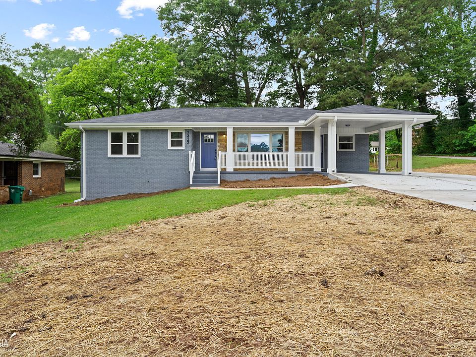 Renovated 3 bed, 2 bath in this great Decatur neighborhood! Home has been completely redone with new electrical, plumbing, roof, gutters, window, interior/ exterior doors and hardware. New LED lighting and LVP flooring throughout. Bathrooms feature grey ceramic plank tile floors and subway tile showers. New vanities Have Rainer Quartz countertops and Koehler black matte fixtures. Kitchen features white shaker style cabinets with soft close doors, quartz countertops and stainless steel appliances. Great flat fenced backyard with patio and an additional 10ax10a slab ready for a storage shed. Unfinished basement with plenty of storage or perfect for a workshop. 4 sided brick home with a new double driveway with a carport. Conveniently located to parks, shopping and restaurants. Close to I 20 making it 15 minutes to downtown and Hartsfield Jackson Airport. NO HOA.