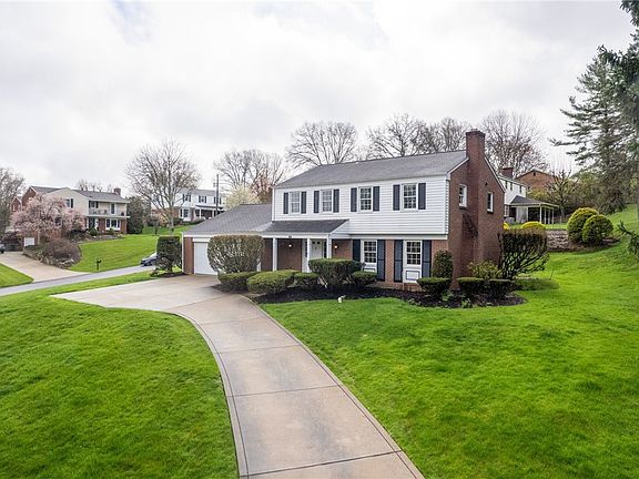 This lovingly maintained brick colonial is located on a large, corner lot, in sought-after Upper St. Clair. With its traditional floor plan, this home offers plenty of charm and space. The first floor features a cozy family room with hardwood floors and built-in shelving. The spacious, eat-in kitchen serves as the central hub of the home, perfect for sharing meals and family time. Retreat to the living room and cozy up to the gas fireplace. The second floor boasts a main bedroom with an ensuite bathroom, 3 light-filled additional bedrooms, and a second full, hallway bath. The generous walk-out attic provides ample storage space. The huge, finished basement offers a versatile space for a teen hangout, home office, or workout room. The 2-car garage features a durable, epoxy-finished floor. Newer HVAC, water heater, gutters, windows, sewer line, and driveway. Conveniently located close to Route 19, all schools, restaurants, shopping, USC library/tennis courts/3-hole golf course.