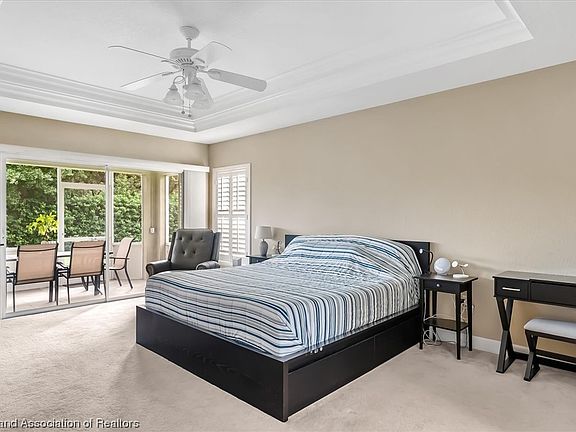 This stunning 3BD, 2BA home boasts a spacious and thoughtfully designed split floor plan that ensures privacy for everyone. Located in one of the most popular areas in Highlands County-Sun N Lake golf course community. As you arrive at the property, you will notice the beautiful landscaping, oversized 2-car garage and a sidewalk that winds around to a separate golf cart door. Once inside, you will find a large living space, dining area and sliders that open onto a 32x13 screened lanai area providing complete privacy in the backyard. The kitchen features white multi-level cabinets, SS appliances, tiled backsplash, wrap around bar and a breakfast nook. The owner's suite also opens onto the lanai area, walk-in closet, soaker tub, shower and dual sink vanity. There are many custom features this home has to offer including: plantation shutters throughout, crown molding, indoor laundry room with cabinets above the sink and two additional storage closets, built-in shelving in one of the bedrooms, chair rail in the dining area, natural lighting and so much more. Roof was replaced in 2021, AC 2015. This home has been maintained and is ready for you to live a comfortable lifestyle. Come and take a peek!!