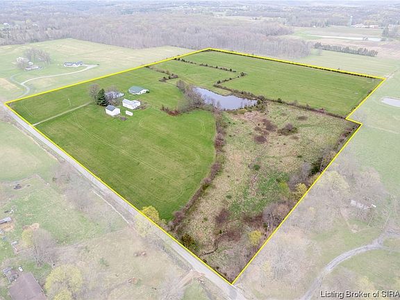 Great location in the country with pasture, tillable acreage and pond. There is a pole barn house on the property with a 23.1 x 48.6 four bay attached garage. Two additional barns on the property: 60 x 50 with lean to and 50 x 30. The farmhouse on the property has 3 bedrooms, kitchen, living room and dining room.