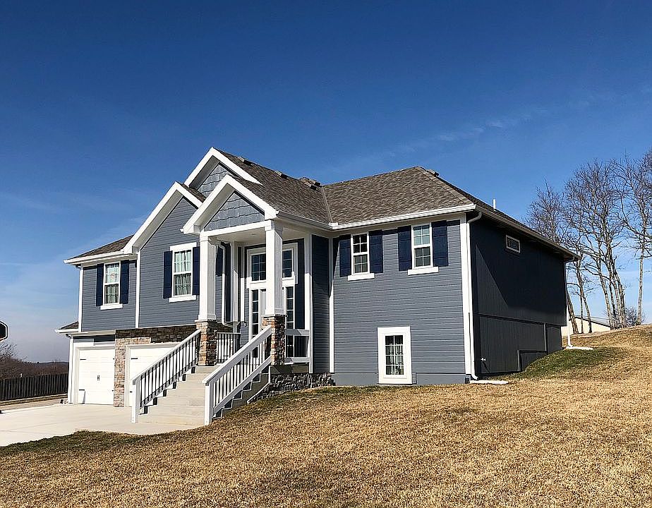 Open and spacious split-entry floor plan with gorgeous finishes! Custom cabinets, granite tops, s/s appliances, hardwood floors, vaulted living room with fireplace, large master suite with walk-in closet and master bath with tiled walk-in shower, large secondary bedrooms and covered deck. Large three-car garage! Just minutes from Smithville Lake! 100% USDA financing available. Smithville AAA School District! SIMULATED PHOTOS