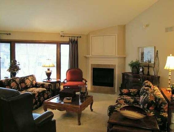Many extras! Hardwood floors in entry, kitchen and breakfast room. Large great room on main floor plus family room in walk out basement. Both have fireplaces! Formal dining room. Four season room with door to 12 x 12 deck overlooking Waters Edge pond. First floor laundry. First floor master with walk in closet & updated bath. Large closets. Large lower level bedrooms with huge closets! 3 car attached garage. End unit with large side yard.