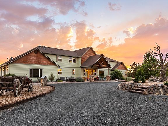 Spectacular custom home on acreage with mountain and canyon views. This 4,154 square foot 3 bedroom, 4 bath home features a large great room with amazing mountain views, custom maple floors, juniper ceilings, and huge stone fireplace. The kitchen has stainless appliances, custom hickory cabinets and granite countertops. There is a large master suite that includes a walk-in shower, soaking tub, big walk-in closet and more. Go outside and take in the spectacular valley views from the canyon rim and enjoy the custom designed landscaping. There is a massive 3,200 square foot shop with a huge loft, possible office space, full bathroom and more. Don't miss the custom barn with pull through doors, hay storage and tack room. There's a loafing shed and fenced pasture area for the horses. This is a very special one-of-a-kind property.