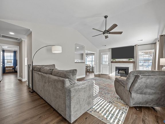 This charming ranch home is full of updates and is move-in ready! Inside you’ll find new LVP flooring 2021, crown and trim accents, updated lighting. Kitchen remodel with granite counters, stainless appliances, soft-close cabinetry, under cabinet lighting. Family room features a gas log fireplace and vaulted ceiling. Both bathrooms have been refreshed with new vanities, fixtures and tile. Major system updates include roof 2023 and HVAC 2021. Outside, relax on the extended patio with a pergola overlooking the fenced yard—ideal for entertaining or quiet evenings. Minutes from shopping, schools, and Redstone Arsenal!
