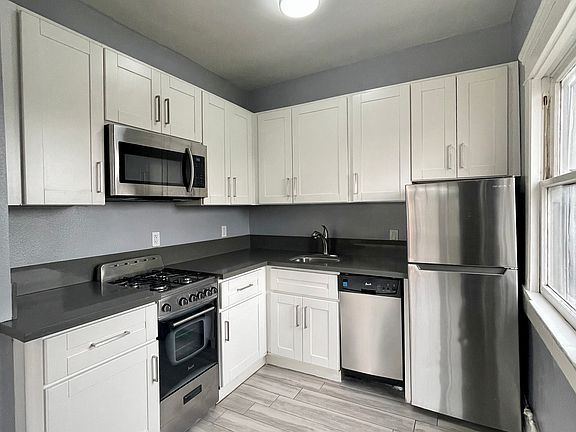 New refrigeratorNew european cabinetsStainless steel appliancesUpdated bathroom