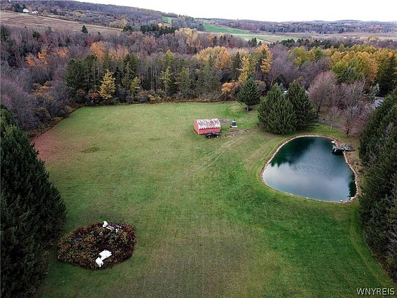 Quiet, country living featuring a 4 bedroom, 1.5 bath house on 9.6 acres! 2 car attached garage and a barn with 1 horse stall and room for another stall or other animals. Beautiful, maple tree lined driveway, swimming pond (11 ft deep with fish), yard and some woods! The house has hot water, baseboard heat or the optional wood auxiliary outdoor furnace. Some wood floors, new carpet and fresh paint in many of the rooms. The basement is dry and has poured concrete walls, laundry and water softener equipment. Electric is 150 amp and has a separate panel for a generator. Above the garage is a separate in-law suite! No town taxes due to the Orangeville Windmill Agreement.