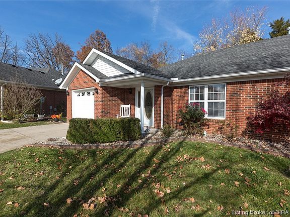 **OPEN HOUSE SUNDAY November 26th (2:00-4:00pm). Location, Location! Only minutes to grocery, drug stores, hospital and more! TWO bedrooms, ONE bath Patio Home with attached GARAGE located in New Albany in Trinity Run development off of Daisy Lane. Front Porch, huge Living Room, Eat-in Kitchen with breakfast bar & lots of cabinets, Sliding glass doors to rear patio with WOODED VIEWS! All appliances remain including washer/dryer. Pantry & Linen closet! Good storage space! 1 Year Home Warranty for buyer. Pull down stairs in garage for attic storage. HOA is $150 per Quarter (covers grass cutting, snow removal of driveways & sidewalks, common area maintenance). No rentals/subletting allowed. Workbench in garage, tall storage cabinet on patio, flat screen tv & rocking chair remain. Cul-de-sac location and Sidewalks! Seller maintains home including roof. Black Diamond termite protection system in place for $17 per month if buyer wants to continue it. Gutter Guards added 2 years ago.