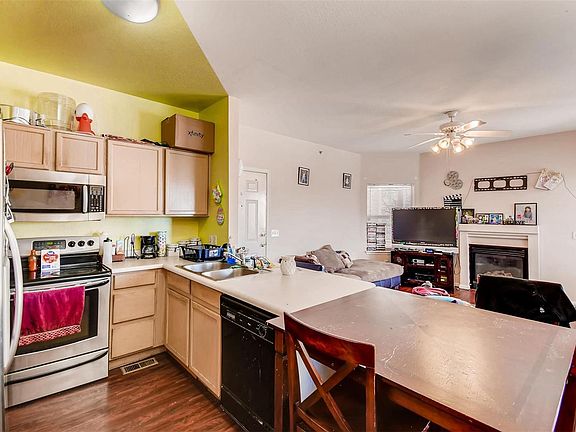 Cozy condo! The living room is open with an inviting gas fireplace. Generous counter space in the kitchen and appliances are included. Enjoy the convenience of the washer and dryer that are included with the unit. Nice size master bedroom with a walk-in closet. Storage unit is included. 1-reserved parking space and plenty of visitor parking. Community pool! Walking distance to schools! Great location! Convenient access to I-25 and I-36.