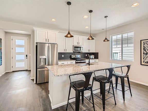 Welcome to your new ranch home in The Aurora Highlands. This 3 bed, 2 bath home with an additional flex space is the featured Alexandrite model from Richmond American Homes. The primary suite includes a walk in closet and beautiful master bath, with the other 2 bedrooms sharing a full bath. The flex space offers unlimited options for you, home office, secondary living room, and many more. The open floor plan boasts a gorgeous kitchen, complete with granite countertops, custom backsplash, and all stainless steel appliances. The dining and living area open to a giant 12 foot wide slider that leads you right to your outdoor living area, complete with covered porch! This is your opportunity to purchase one