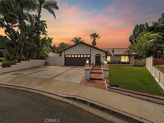 Welcome to 24222 Vía Luisa, a beautifully renovated single-family, single-story pool home. This charming residence offers 1,360 square feet of living space with 3 bedrooms and 2 remodeled bathrooms and a 9,463 square foot lot - a perfect blend of indoor and outdoor living. As you enter, you'll be greeted by high ceilings that create an airy and spacious atmosphere, enhanced by an elegant large built-in entertainment center, adding a touch of sophistication. Large dual-pane windows throughout the home provide abundant natural light and views of your private pool and spa. Interior updates found throughout the home include new laminate flooring, upgraded baseboards, recessed LED lighting, new wall texture and paint, solid craftsman doors, and built-ins cabinets. The remodeled kitchen and bathrooms feature Quartz countertops, hardwood shaker cabinets with soft close doors and drawers. Kitchen updates also include new GE appliances, a counter depth fridge, a touch control faucet, and black mirrored subway backsplash. Bathroom updates include porcelain tile bathroom floors, tub walls, and shower, shampoo shelves and shower seat, non-scald shower valves, and primary bath towel warmer. Step outside to find an expansive backyard perfect for entertaining or enjoying the California sunshine. The outdoor space includes 20 ft diameter palm thatched palapa with fan, power, and lights which overlooks the pebble-finished 31-foot swimming pool. The lush backyard features newer pool equipment, color changing LED pool light, fruit and citrus trees (9 trees producing oranges, lemons, limes, grapefruits, avocados, and bananas), a raised vegetable garden, mature landscaping, garden shed, exterior LED lighting, and large grassy side yard. A private tropical paradise! The home has also been fully re-piped with PEX piping for added reliability, updated with a 50-year tile roof, and added color matched rain gutters. A two-car garage with cabinet built-ins, laundry hookups, and 3 car driveway completes the home. Located just a short stroll to Valyermo Park, Castille Elementary & Park, MV YMCA, Marguerite Tennis & Aquatics complex, and Calico Canyon with hiking & biking trails. Low HOA fee for Lake Mission Viejo Membership. No Mello Roos! Don't miss the opportunity to make this stunning Mission Viejo residence your new home!