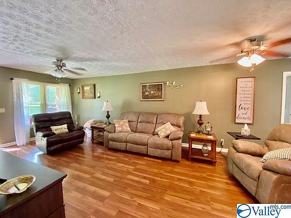 BACK ON MARKET --The purchasers' loan fell through!! Charming 3 Bedroom 1 3/4 Bath Home with open floor plan, Large Living Room with Laminate Floors and Ceiling Fans, Great Size Eat In Kitchen with Bar and Laminate Flooring and Lot's of Cabinets, Master Bedroom with Carpet, Walk In Closet and Ceiling Fan, Bedroom 2 with Carpet and Ceiling Fan, Bedroom 3 with Vinyl Flooring. Additional 14x24 Room that could be used as Family, Game Room or Office. Large Laundry Room, Large Back Deck, Fire Pit and Chain Link Fence in Back Yard!! Storm Shelter and 20x24 Detached Garage!! Metal Roof, New Windows, HVAC around 4 years old. Conveniently Located Close to I-65 in Elkmont!!
