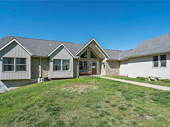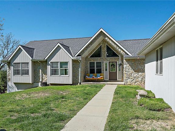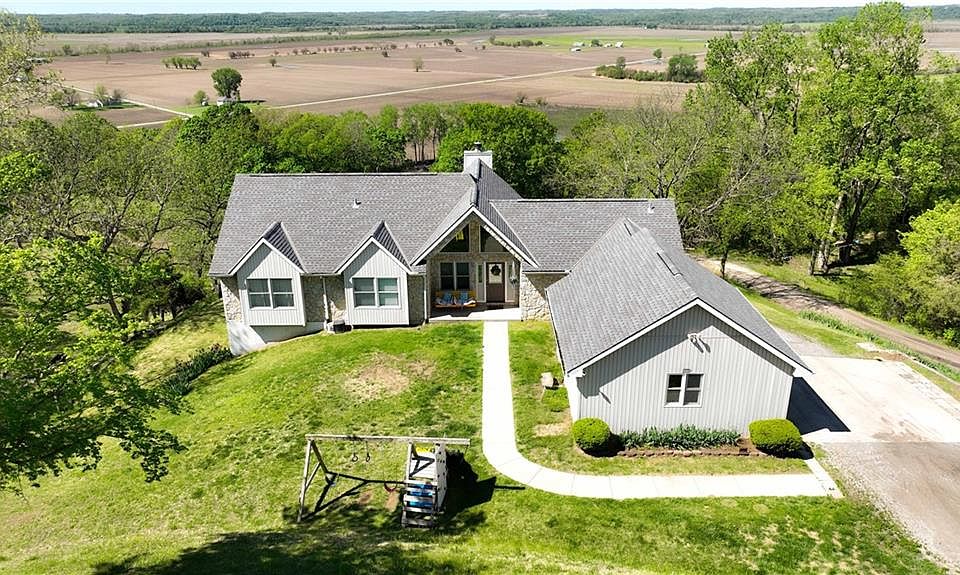 Enjoy privacy and tranquility in the beautiful bluffs of Platte County - all just a few minutes away from historic Weston and the award-winning West Platte School District. This 22-acre (m/l) property features a gorgeous custom-built home overlooking the Missouri River Valley with soaring windows and a cozy stone fireplace to enjoy every sunset. With four bedrooms and four bathrooms, plus a large open-concept kitchen and dining area, there is plenty of space for everyone! Head down to the full basement for loads of extra living space (to include a bar) and storage. If that's not enough, the 30X40 outbuilding with 100 amp electric offers even more. Property features newer HVAC and roof. It's a must see!