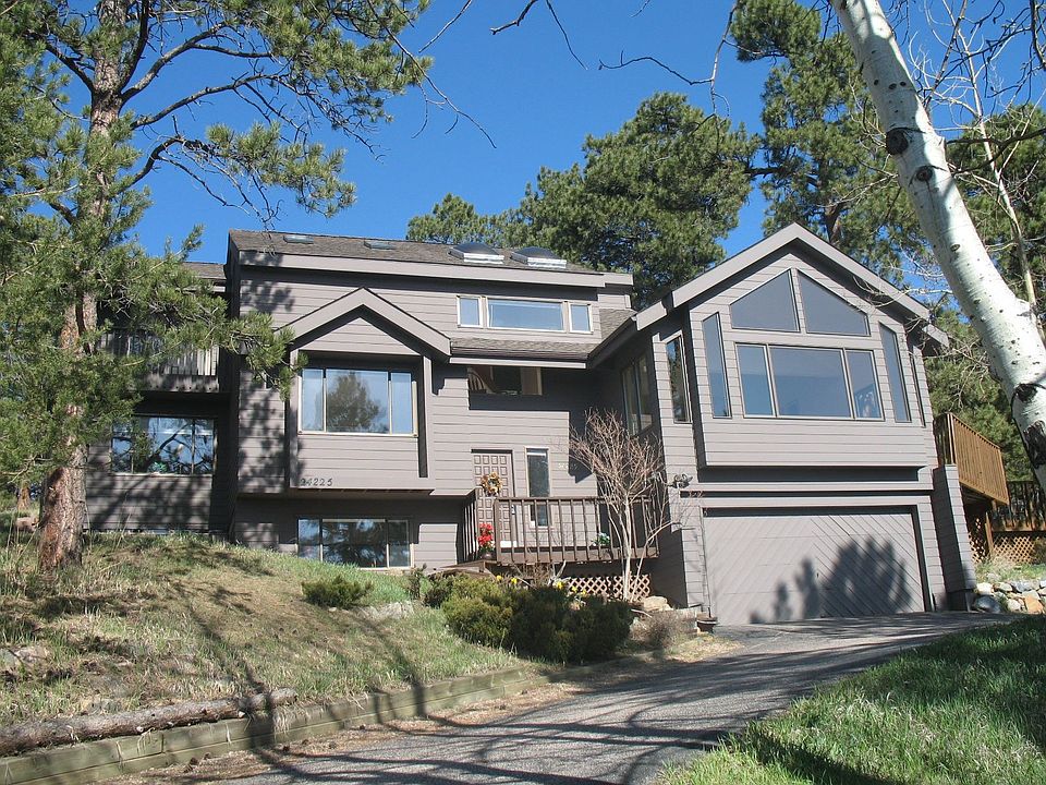 Experience your own mountain retreat. Fabulous updated home with phenomenal downtown Denver views! Great privacy on this 1/3 acre secluded lot with open space on two sides. Sunny & bright with lots of windows to bring the views in. Updated kitchen featuring granite countertops and maple cabinets. Large great room with bamboo floors, fireplace and city views perfect for entertaining or just relaxing. Master suite with bath, sitting area, walk-in closet & two decks! Hot tub under the stars! You will want to see this unique Genesee property!