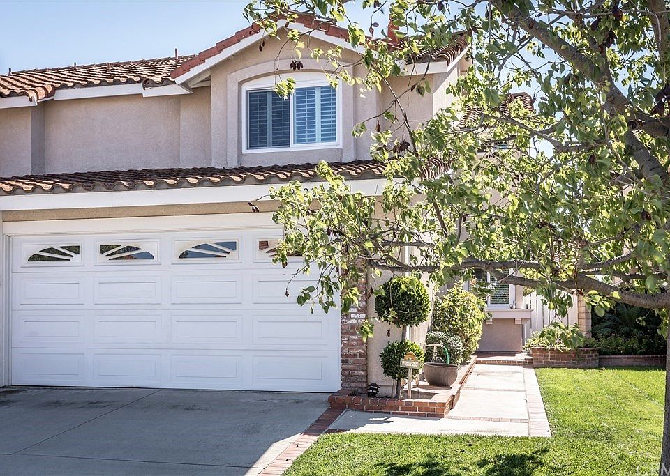 Beautiful home located on quiet, interior location in highly desirable family community. Includes Newer Mill Guard Windows and A/C unit. Professionally landscaped front yard with custom walkway leading to double door entry. Spacious living room with custom brick Fireplace and mantle. Adjacent formal dinning room with Bay Window over looks inviting backyard. Bright, sunny kitchen includes upgraded counter tops, custom painted cabinets with pull-out pantry drawers, recessed lighting and eating area with views of both front and back yards. Bathroom, laundry area and over sized two car garage with epoxy floors and custom cabinets complete the downstairs. Upstairs includes Master Bedroom offering 2 large closets, 1 walk-in and 1 double mirrored, dual sinks and vanity. Both secondary bedrooms include walk-in closets, with front bedroom more like a 2nd master. Addition storage and recessed lighting have also been added. Inviting, low maintenance backyard offers covered patio, raised planters and fruit trees. Walking distance to park, award winning schools, shopping, freeways and toll road. HOA amenities include pool, spa, tennis courts, baseball diamond and picnic area. LOW HOA FEES AND TAX RATE.