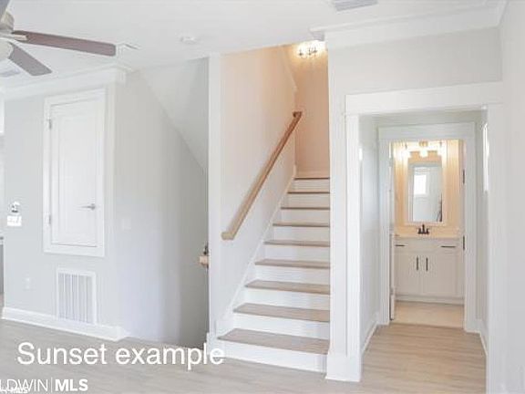 THE PERFECT BLUE-GRAY COTTAGE! Welcome to Summer Salt, Truland Homes' newest upscale coastal community in Orange Beach, AL. Drive into the lake and nature filled neighborhood and immediately feel your blood pressure drop. Beauty in abundance! Enjoy the zero entry resort style pool and entertaining cabana on site or take a 1/4 mile stroll to beach access. Relax by the community fire pit, try your skills on the putting green, or just sit back and enjoy the bird fest flyovers. Lots of local restaurants and entertainment within walking distance. This 3 bedroom, 4 bath "Cadet" painted coastal designed home has 1507 square feet of beach style luxury living space. Perfect for rentals, all bedrooms have en suite bathrooms. Upgraded painted cabinets, granite, flooring,plumbing fixtures and tile. The kitchen features Carrara countertops, a stainless steel apron front sink and a 5 burner gas range. Highly desired EVP flooring in all main living areas and master bedroom. Parking galore with three assigned spaces under the house and ample guest spots as well! Outdoor shower, outdoor storage, Rinnai tankless water heater and an 18' wide porch. Built to Fortified Gold standards and PWSC 10 year warranty. Enjoy the total connected home package which includes a Ring doorbell with a Zmodo outdoor camera, Android tablet, Smart Home Hub, programmable Ecobee 4 thermostat, and Connect 2 wave deadbolt on front entry. Estimated completion June, 2023. Interior photes are of the Sunset model home. SHORT TERM RENTALS PERMITTED