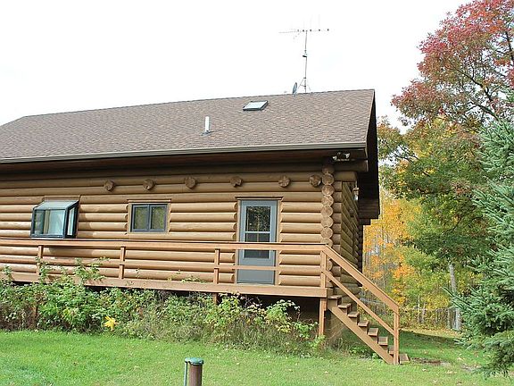 Picture perfect log home tucked in 160 acres of ultimate privacy! This quality built chalet offers a nostalgic feeling & makes a perfect year round retreat. Recent updates include hardwood flooring, water heater, boiler. Outdoor wood boiler for supplemental heat. Energy efficient! Fiber opt. internet. 30x40 pole barn for your toys. Property provides a diverse habitat for all types of wildlife and 2.5 miles of est. trails thru the Eastern 40 acres & remaining property has opportunity for expansion. Forest floor is thick w/ plants&shrubs and a mix of mature hardwoods & softwoods. Trail cam photos show mature bucks have a strong presence on this property w/ limited hunting pressure in the area. Extensive wild blackberry/raspberry bushes. Located within minutes to major amenities; grocery, restaurants, Gandy Dancer trail, and 90 min. from the TC. You'll love winding down the driveway to your own personal sanctuary-a rare find! Opportunity avail. to purchase turn key. Contact for details.