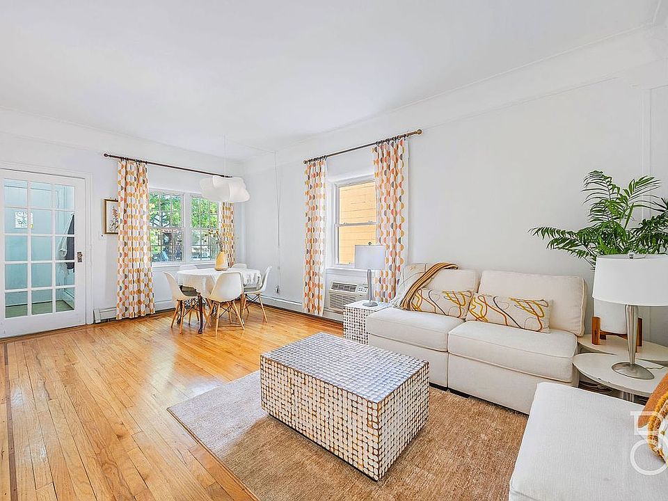Lovingly maintained and ready for its next chapter, this hard-to-find semi-detached two-family brick home enjoys windows on three sides for abundant natural light and cross-ventilation. Original architectural details showcase the home’s character, including coved ceilings, a slate roof, and arched openings; a skylight and transom on the upper floor further flood the interior with light. Hardwood flooring, several ceiling fans, and freshly painted interiors enhance the appeal. The top-floor residence is a spacious five-room, two-bedroom layout with a beautifully renovated bath and a kitchen featuring quartz countertops, stainless-steel appliances, and a handy pot filler; the original arched opening connects the kitchen to the dining area seamlessly. The walk-in level offers a one-bedroom with an extra-large living room, windows in every room (including a windowed bath), and an eat-in kitchen that opens directly to the rear yard for easy indoor-outdoor flow. Potentially unused square footage on the lot with expansion possible, but must be confirmed independently with your architect. Outdoor space spans both the front and back of the property, with a well-manicured yard ideal for seating and gardening, and private rear parking that can accommodate multiple vehicles; an updated tankless hot-water system and two-zone heating add modern efficiency. Conveniently located in East Elmhurst, the home offers easy access to LaGuardia Airport, the Grand Central Parkway, the RFK/Triborough Bridge, and the 7 train, while the Q33 bus is just steps away.