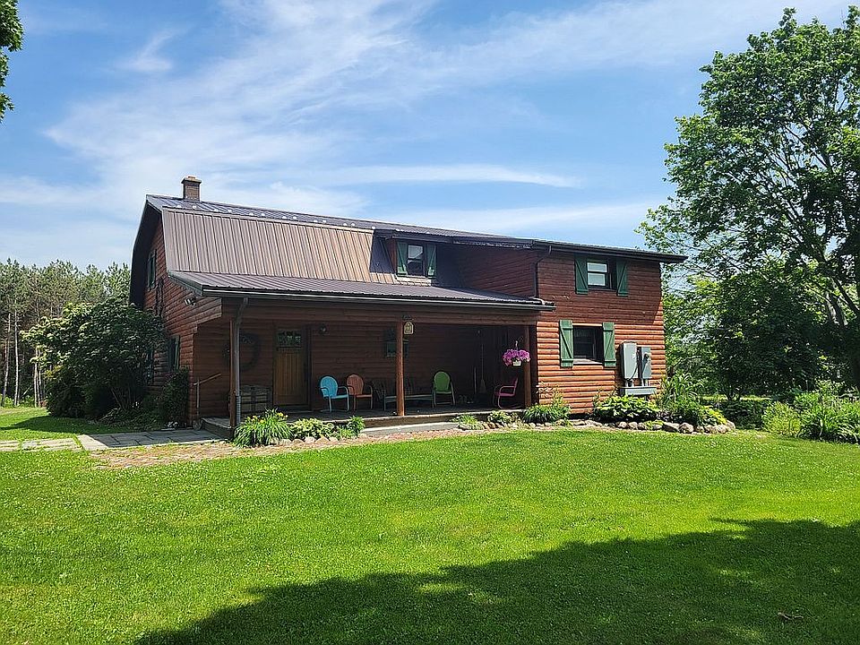 Log Cabin located 6 miles North of Watkins Glen on the West Side of Seneca Lake. Kitchen and downstairs Bathroom just renovated, including New Floors. * 3 Bedrooms * 2 Bathrooms * Loft/Office/Guest Room * Partial Walk-Out Basement w/ French Doors * Front Porch * Back Patio with Pergola * Woodtex Cabin with Deck overlooking Pond * Metal Roof * Electric, Fuel Oil and Pellet Stove Heat * Raspberries, Grapes, Strawberries, Apple Trees, Raised Bed Vegetable Garden and several Flower Gardens.