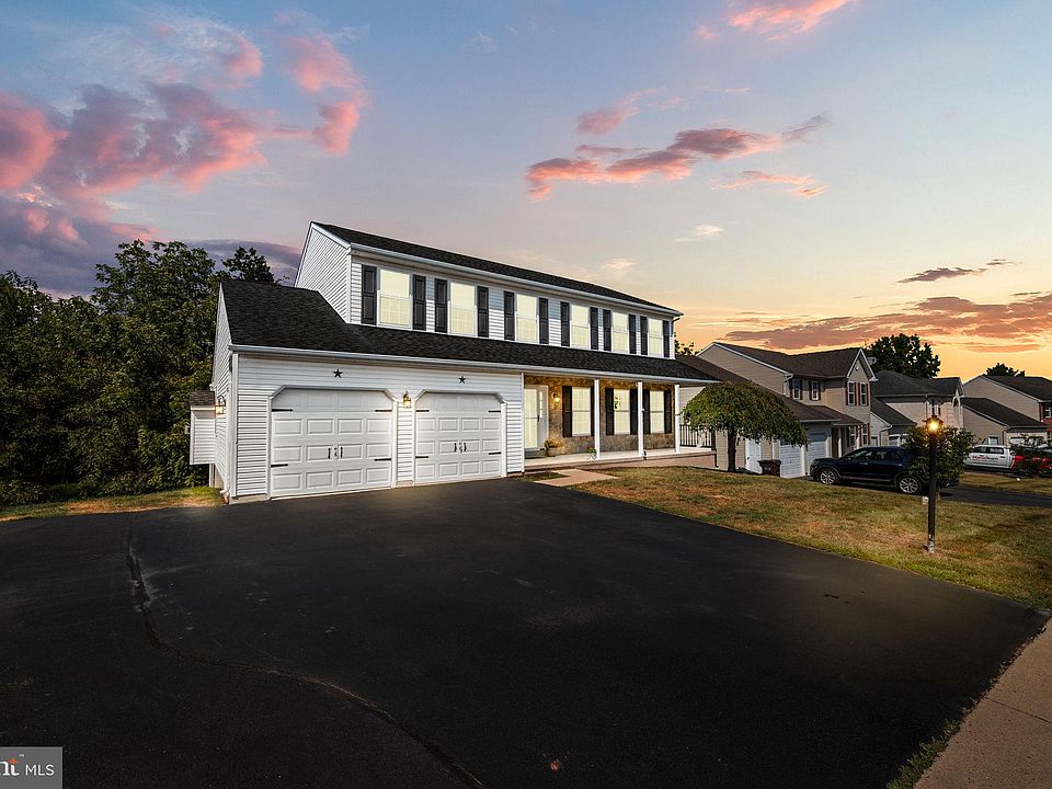 THIS IS THE ONE! Looking for an expansive 4 bedroom, 2.5 bath colonial in New Hanover Township?? THIS IS THE ONE! Attractive and inviting Kingston Hill Colonial in popular Gilbertsville community. Check out the welcoming stone front covered porch. Hardwood foyer as you enter into the spacious eat-in Kitchen with ceramic tile flooring, updated cabinetry, MARBLE countertops, gas range, built-in microwave, desk area, peninsula breakfast bar, cheerful breakfast area and sliders to 14' x 20' deck with gorgeous views! Adjoining Family Room with ceiling fan, recessed lighting and handsome gas fireplace with marble surround. Formal Dining Room with chair rail and ornamental woodwork. Oversized Living Room with tons of natural light! Powder Rm with hardwood flooring. The upper level houses a large Primary bedroom suite with chair railing, walk-in closet and Main Bath with double vanity, 4' shower, corner soaking tub & linen closet. Three additional Bedrooms with abundance of of closet space. Second full Bath with tub/shower combo and linen closet. Second floor laundry is a plus! Full, daylit, walk-out basement with sliders and two windows can easily be finished off into additional living space. Newer HVAC (2021) New Windows and Slider in Kitchen (2022)! Do NOT miss this one! Schedule your showing today before it's gone!