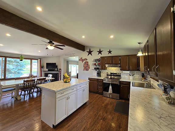 This recently renovated 3 bedroom ranch home greets you from a long day, with an open concept kitchen featuring all new countertops, sink, faucet, tile backsplash, and stove.
