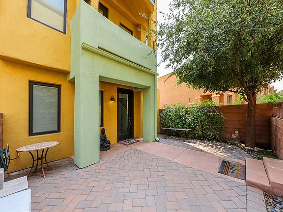 This is it! The best location! End unit with great views is quiet and private. 2 master suites with huge walk in closets. Ground floor has soaring ceilings, art walls and windows galore. High end Pella windows with interior shade gives this entire home amazing warm and welcoming light. Den downstairs can be an office, studio or a 3rd bedroom. Main floor has a great room with beautiful kitchen with granite counters and island, cherry cabinets and stainless appliances. Powder room and nook for office lead to covered balcony. Bedroom floor has laundry room and washer/dryer convey. Roof top deck has mountain views and outdoor kitchen. This home has it all, even an elevator and is truly one of a kind. Roof was totally rebuilt in 2019. Community has pool, spa and fitness room. Seller related LA. spa and fitness center and only a 3 minute walk to the Riverwalk