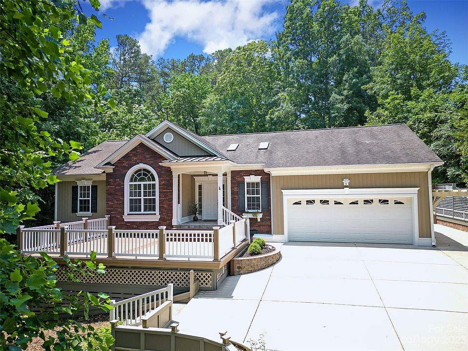 Bright, open and airy, this ranch offers one level living at its best on a private half-acre lot! Open concept in the main living area with vaulted ceiling and skylights which allows for tons of natural light. Kitchen boasts granite, breakfast bar, and tile backsplash. Dining area large enough to host family and friends. Spacious primary bedroom with attached ensuite with shower and tub, dual sink vanity and walk-in closet. Secondary bedroom with high ceiling and stunning palladium window. Two additional secondary bedrooms, one near the kitchen would make a fantastic home office. Step out onto the screened porch and enjoy the peaceful setting of the flat, fenced-in backyard. Just off the screened porch is a large deck with pergola that opens to paver patio. Lots of outdoor spaces to relax or entertain including an extensive front deck overlooking the densely wooded lot. Oversized 2 car garage with storage. Ample parking in front of home and on extended driveway. No HOA!