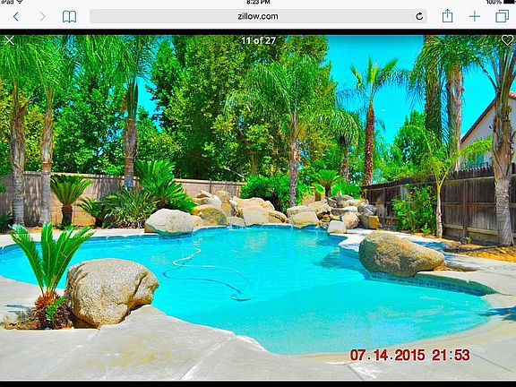 Awesome Home. 6 BR. 5 Ba in Clovis. 1/3 acre lot next to park. Call Dan (559)977-1079. Dual water falls flow into massive Beach Entry Pebble tech pool with over 2000 sq ft of stamped concrete decking. Hardwood Floors downstairs and tile kitchen with granite counters, large walk in pantry. Spacious Master Suite with terrace overlooking foothills and a tree lined park. Iron gated RV parking saves money on storage fees. Must see to appreciate. New synthetic Turf front and back yards. Lots of sago palms around pool. Perfect for the whole family. Walk to Freedom Elementary School. Clovis East about 1 mi. Call Dan to view (559)977-1079