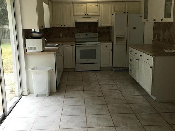 Light and bright , windows galore. Private fenced in backyard with one car garage. Fully tiled home,great location,dead end street, nice kitchen wth dining area and three beds 2 bath. Tenant to maintain lawn..small pet ok..washer dryer hook up