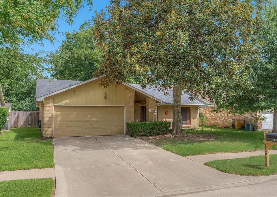 Well Maintained 3/2/2 offers spacious closets and ceiling fans in every room, ceramic tile throughout the open living areas including utility room/kitchen/breakfast/living room has a large eye catching corner brick fireplace and glass doors leading to the large fully fenced backyard. Backyard boasts a large covered patio with extended decking, stepping stones leading to the storage shed, and luscious mature trees. All located minutes form Hardy Toll Road, Grand Parkway and I45.