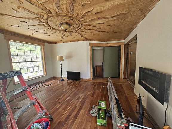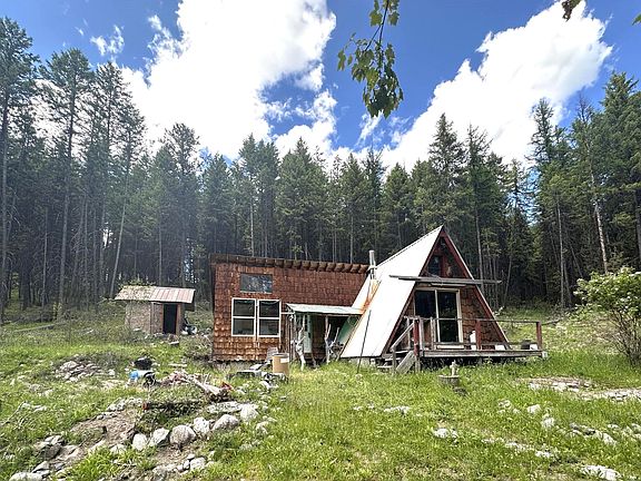 The motivated seller is offering owner terms with $50k down and 6% interest, call me for details about this rare chance to own 10 timbered acres w/a creek & utilities providing an ideal retreat from society. This quaint cabin could be restored, it features 1 bedroom, a cozy bathroom, cute kitchen and family area w unique ceiling details and 2 upper lofts for additional storage, OR you could bulldoze the cabin and put in a tiny home or manufactured home. The property is equipped with essential amenities including a drilled well, an unpermitted septic system, and electricity. Outdoors, you'll find a shed for your tools, ''or to keep the bear out of your garbage'', a spacious garden area ready for your green thumb, and a greenhouse structure that, with a little TLC, could flourish once again