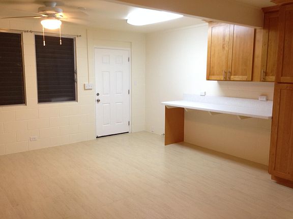 Recently Upgraded Studio with stainless steel appliances, ceiling fans, maple cabinetry, quartz counters, and tile floors. Close to Ft Shafter, Hickam, Pearl Harbor, Camp Smith! The apartment is part of a 4 unit building but is nice and private. The washer and dryer are for your use, not shared. One parking available for small/mid sized car. Rent includes water, electric, and high speed internet. Minimum one year lease. Easy to show with appointment. Please email with any questions. Available early April. In your reply email please tell me a little about your job/income, who would be living there, why you are looking to move, what kind of car you drive and when you would like to move in. No application fee. No air conditioning allowed