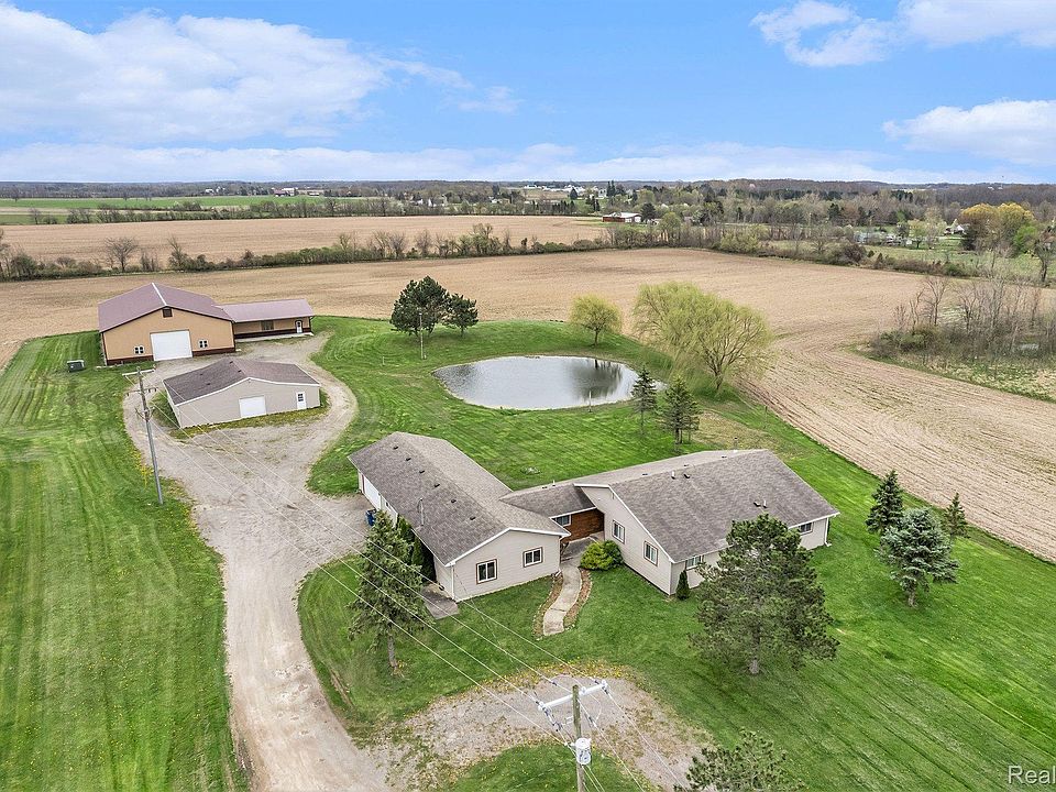 Welcome to your live/work space on over 10 beautiful acres. This spacious home is turnkey ready with newer carpet, paint, and large flex space. Enjoy the pond views from the back patio and overlook the 2 outbuildings totally over 8,000 sqft. The home has an attached 3 car garage, secondary 1,600 sqft workspace garage, and an impressive 7,400+sqft work building complete with a new 480 3 phase 800amp electrical system and generator, 24ft ceilings, multiple insulated rooms, and a second well separate from the home.