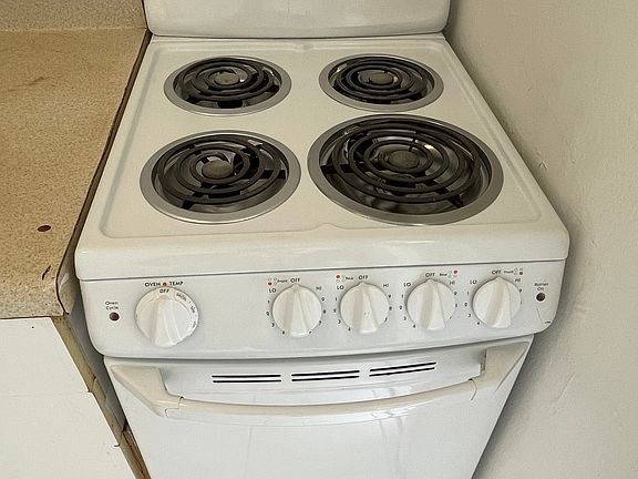Freshly painted with new stove and Fridge brand ac wall unit and 1 parking space.