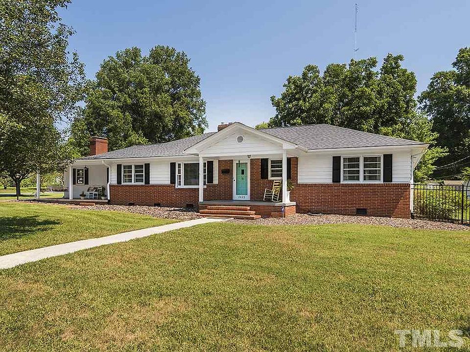 Sprawling ranch near Alamance Country Club, Elon Univ. & shopping. Neutrally painted, new carpet in the den, new flooring in eat-in kitchen, Master w/built-in's, updated master bath w/walk in shower, WIC, HW's in Living, Dining, hall & guest bedrooms. Laundry Closest upstairs. Exterior Freshly Painted. SS double oven & microwave COMING SOON. New french back doors to patio!! Fenced BY. Carport. Roof 2017. Ref. Remains.
