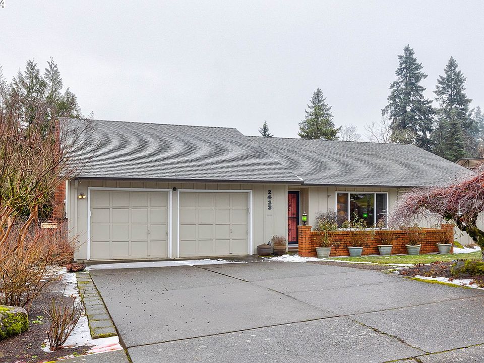 Finally! A fabulous 1-level, quality home in West Linn's coveted Hidden Springs neighborhood. This cherished and beautifully maintained home truly "lives large". Timeless updated kitchen has an eating bar, pantry & pristine, sturdy laminate floors. The great/family room has gliding glass doors out to a beautiful backyard, flanked with two paver patios. The now sleeping winter landscape will bloom into glory with the kiss of spring, as established, rare and special plantings and trees blossom into a cacophony of beauty. Award winning schools, parks, nature trails at hand. Come home to West Linn!